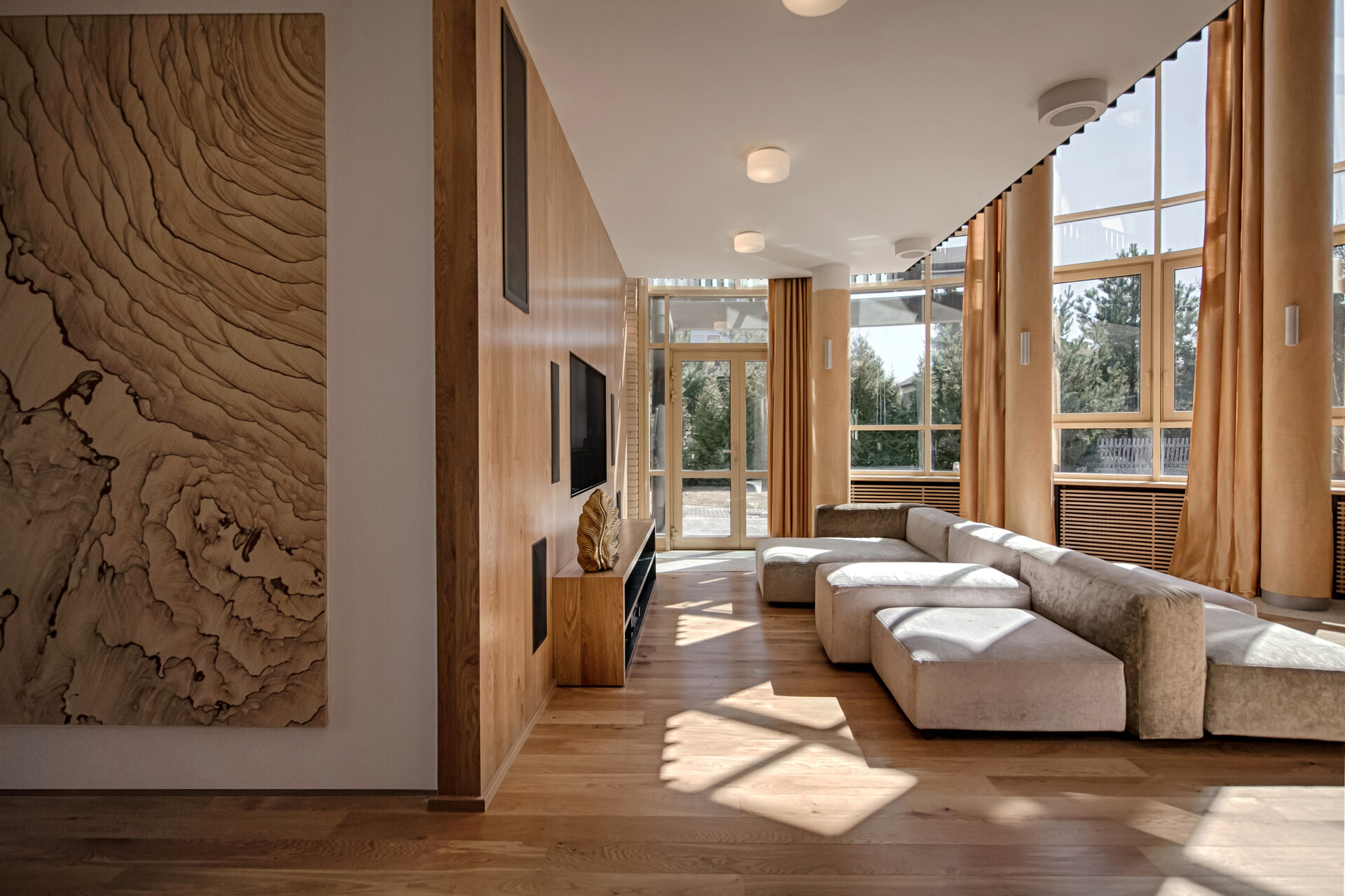 Дом в коттеджном поселке «Резиденции Бенилюкс» был построен заказчиком 15 лет назад. Семья жила здесь, пока не подросли дети и не понадобилось более просторное жилье. И тогда все переехали в новый дом, а Александре Журавлевой предложили взяться за реновацию старого. После чего его выставили на продажу.