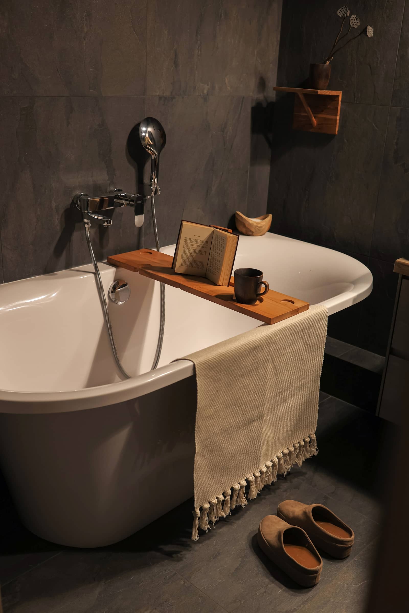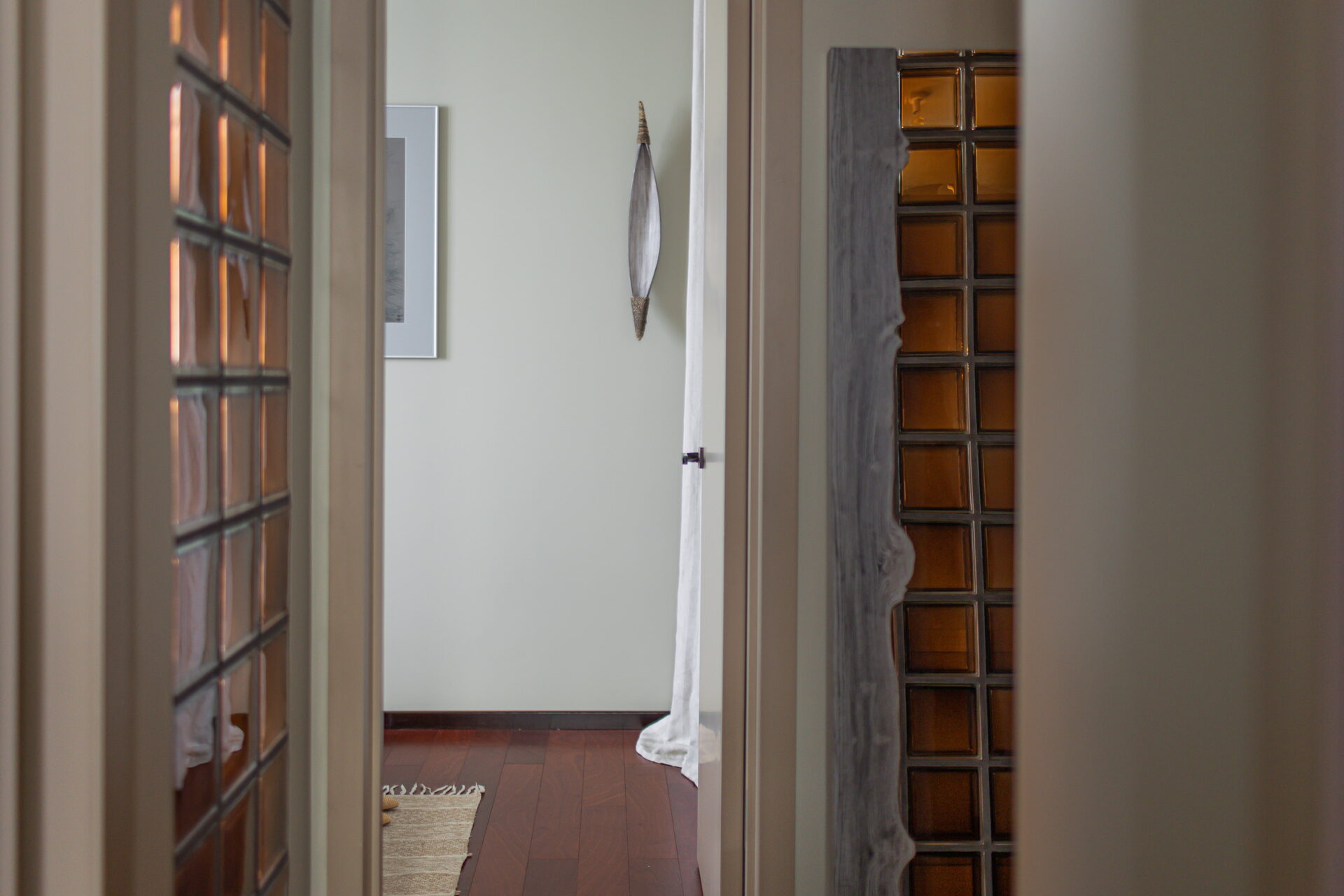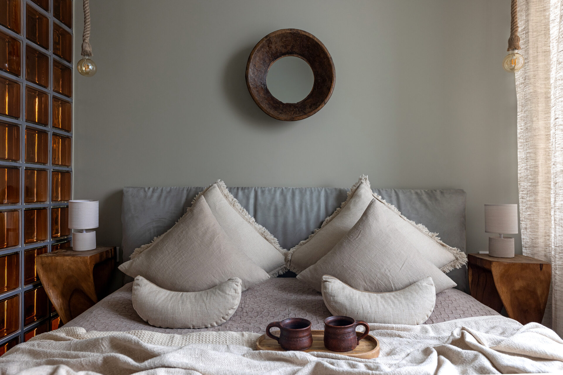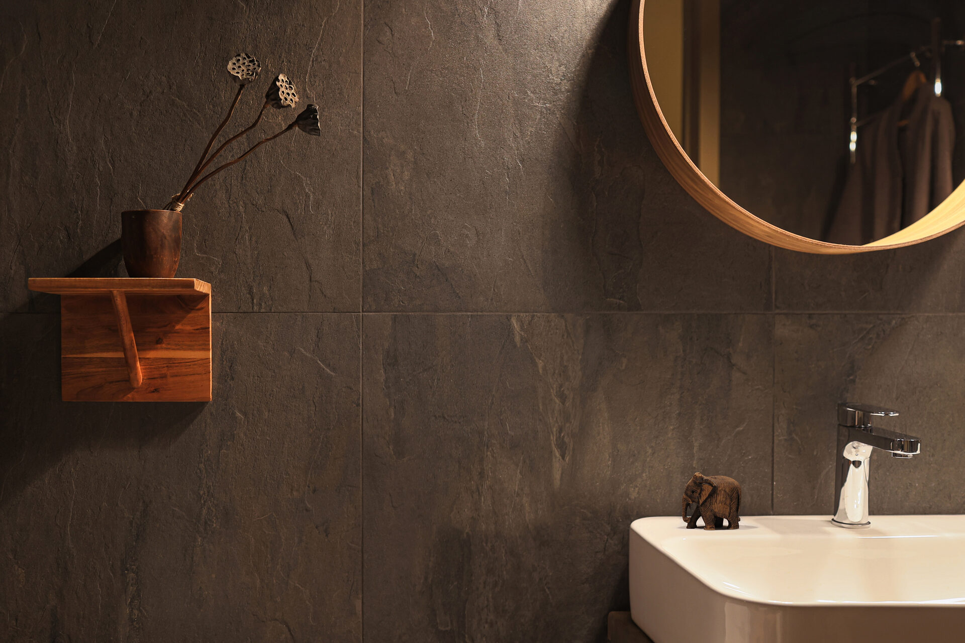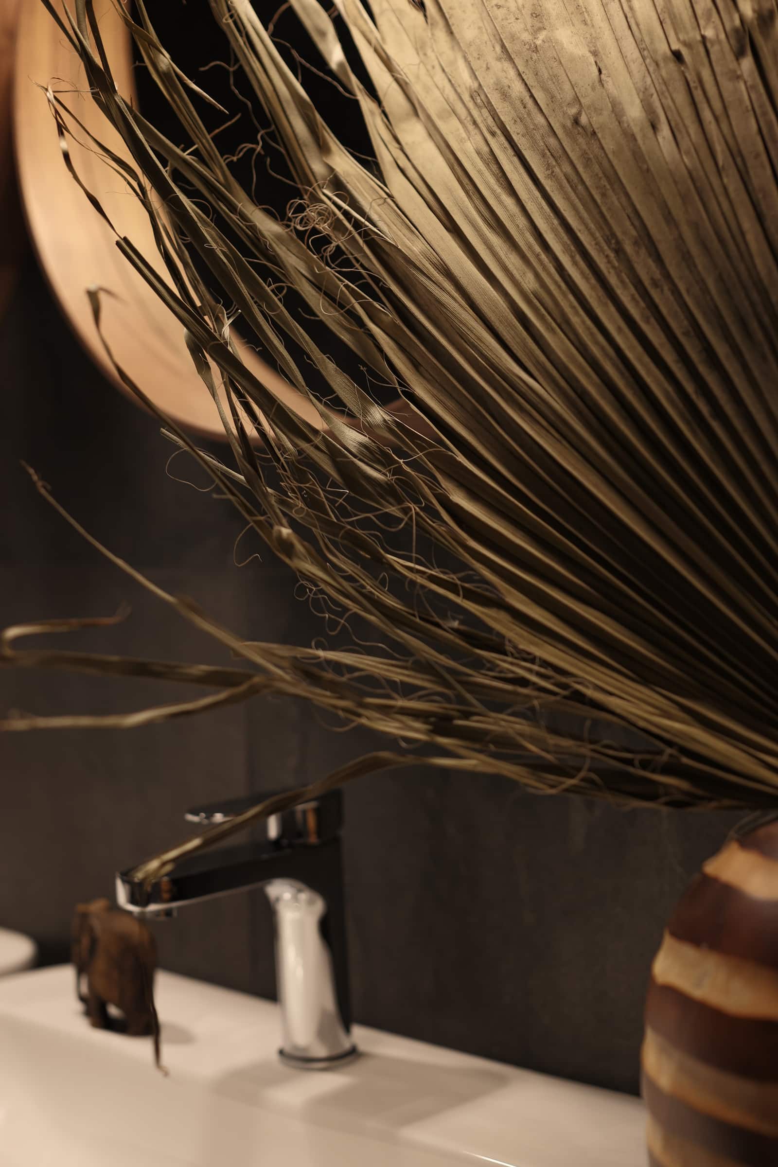 Каждый предмет интерьера, привезенный из разных уголков мира, обладает своей уникальной историей и самобытностью, что придает помещению особую ауру и насыщенность. В отделке были использованы натуральные материалы, такие как дерево Сапеле на полу, Тик и Манго, камень, а также натуральный текстиль, включая лен и хлопок. Эти материалы не только добавляют эстетической привлекательности, но и создают ощущение близости к природе.