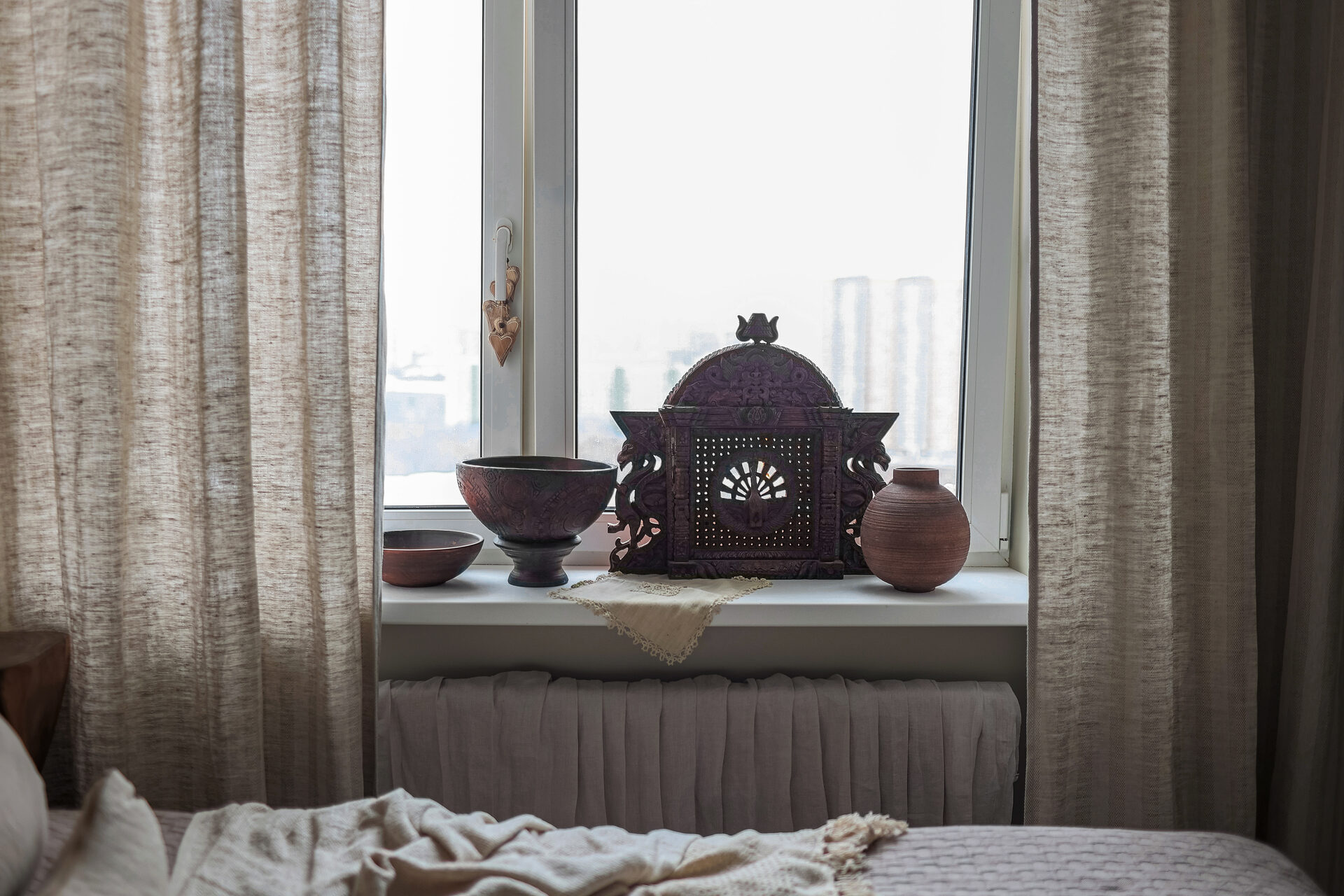 В московской квартире моей подруги я спроектировала уютную зону для отдыха и релакса, которая стала настоящим оазисом спокойствия и гармонии. Интерьер этого пространства вдохновлен мотивами и элементами культур Юго-Восточной Азии, включая Непал, Бали, Таиланд и Индию.